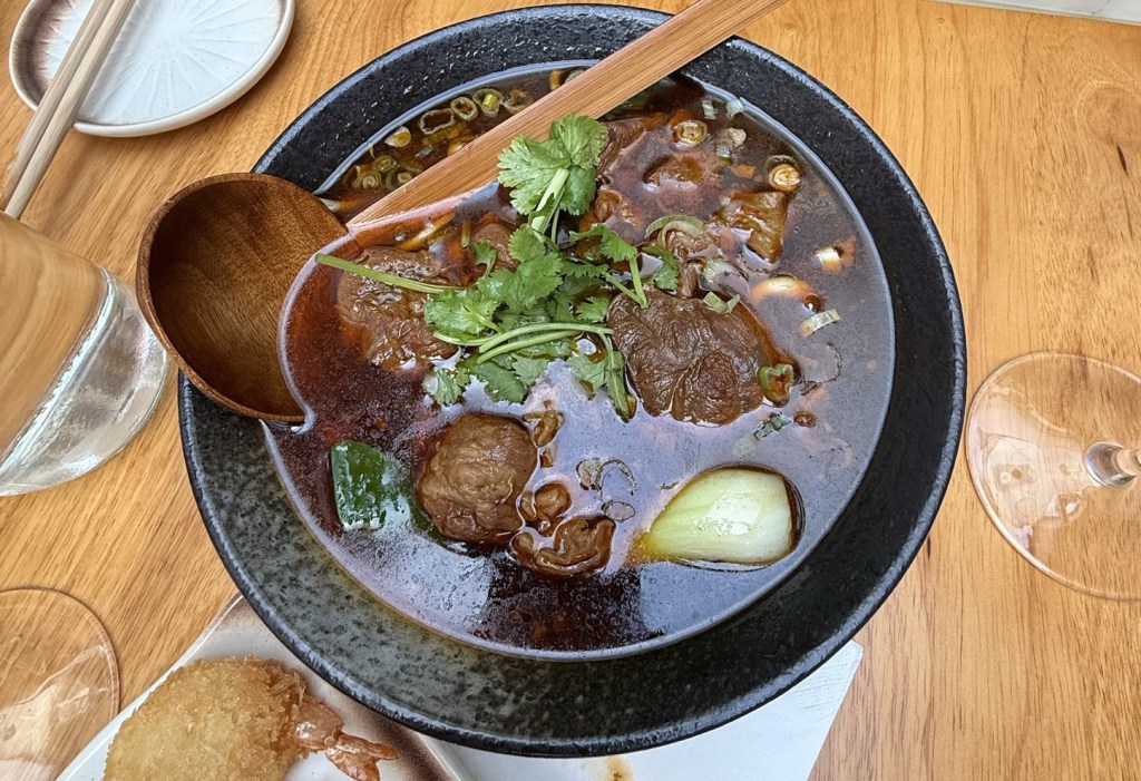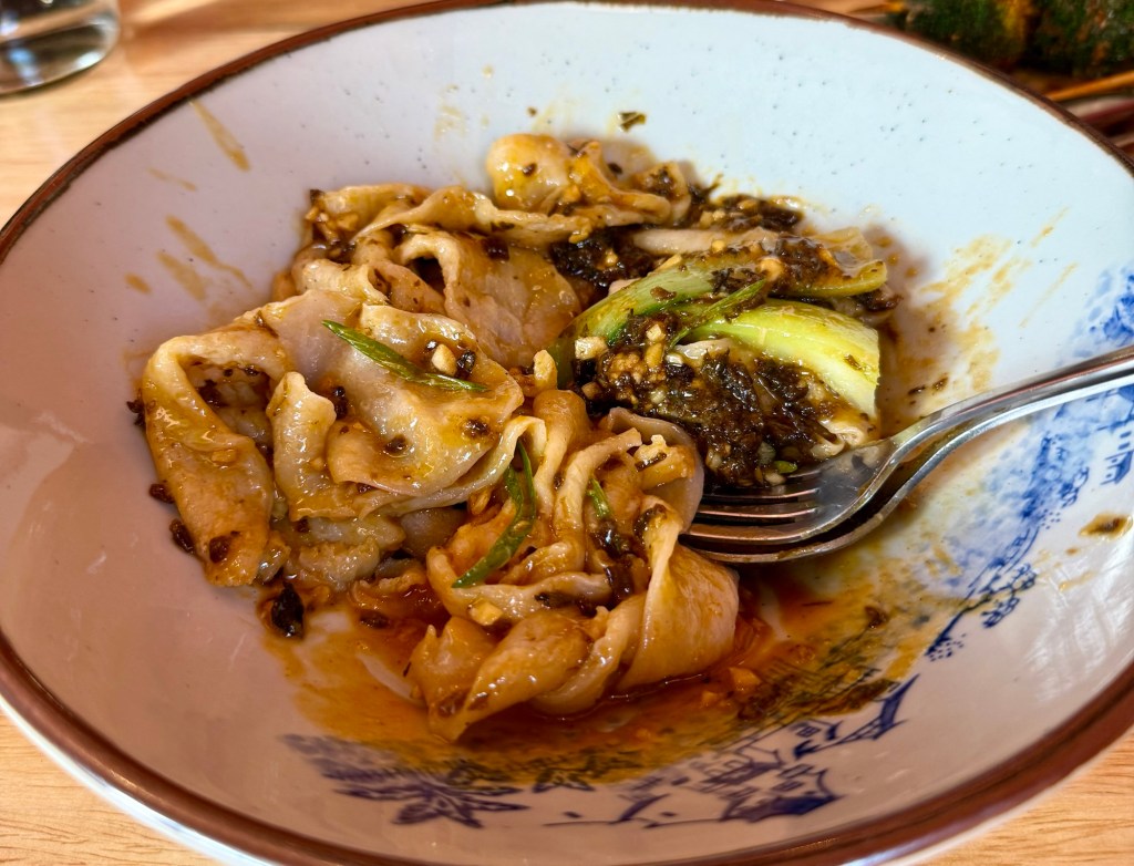 For a main we ordered Stewed Brisket with hand-pulled noodles that comes in a savoury I soy broth and Cumin Beef Noodles with onion and pepper. Both were substantial and we never got through them all. We were asked if we wanted to take them and we would have but timing wasn’t great.