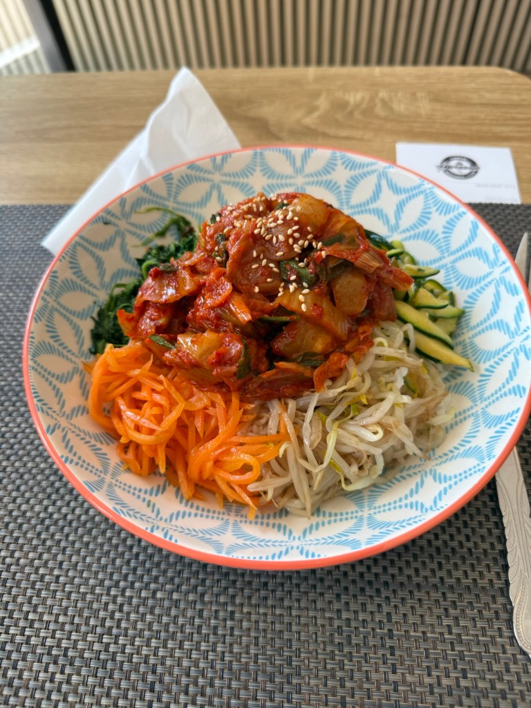The starters are small plates of interesting vegetables like a shredded potato salad with chilli oil and vinegar. Then larger dishes are fried or street food including a cumin beef burger and then there are soups and more classic dishes including rice. The list is very long so maybe look before you visit or you will be overwhelmed. The desserts I will come to later.